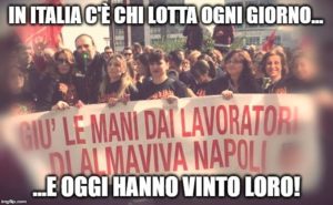 La vertenza Almaviva prosegue da mesi e si è aperta a seguito dell'annuncio da parte della multinazionale delle comunicazioni di una vera e propria ondata di licenziamenti (3000 lavoratori su un totale di 8000), in particolare nei call center di Palermo, Roma e Napoli.